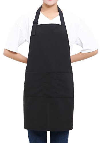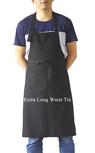 SEW UR LIFE Black Professional Resist Water Adjustable Plus Size Bib Apron 3 Pockets Home Kitchen Garden Restaurant Cafe Bar Pub Bakery for Cooking Chef Baker Servers Craft Unisex