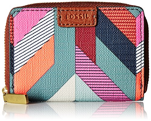-. Title : Fossil Rfid Mini Zip Card Case Chevron Blue Wallet