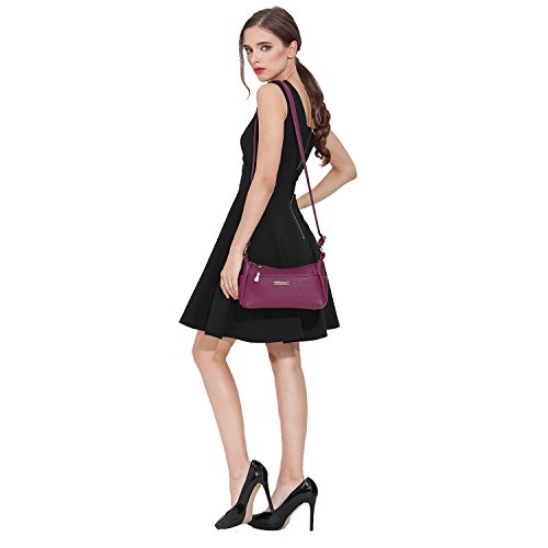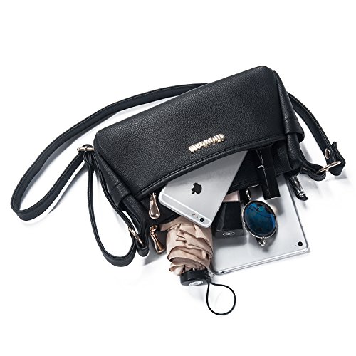 -. Feature : Premium synthetic leather with soft lichee pattern on the surface, polyester lining, gold-tone hardware. / Approximate dimensions: 10.5" long, 6" high, 3.5" wide. Comfortably fits an iPad mini and tablets under 8" x 5". / Double straps attached. One long crossbody strap (can be adjusted up to 44"), one short shoulder strap (20.5", not adjustable). / 1 front pocket, which can easily fit an naked iPhone X 8 7 Plus; 1 back zipper pocket, roomy for a Samsung Galaxy S7; 2 small side position, for tissues, receipts or other; in the main zipper pocket there're 2 compartments with 1 zippered divider, 2 capacious slots and another zip pocket on side walls. / Perfectly designed for travelling, shopping, works, etc. Package will also come with an extra nail clipper as a gift. Please be sure to compare the wallet with any bag you have in case the size doesn't meet your expectation.