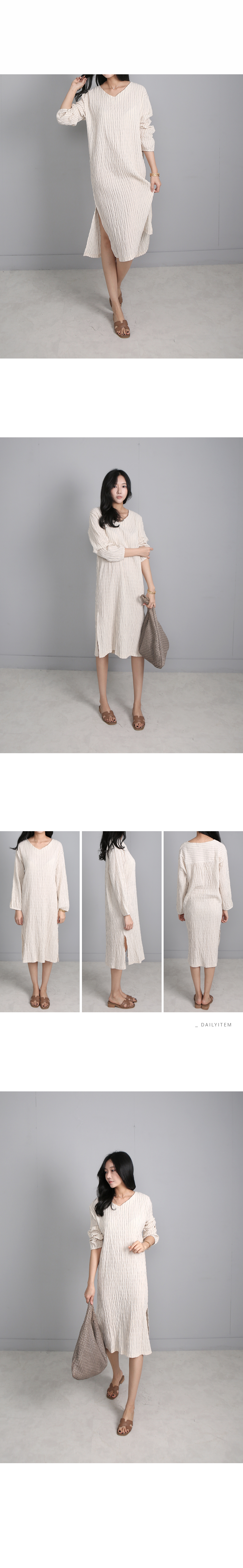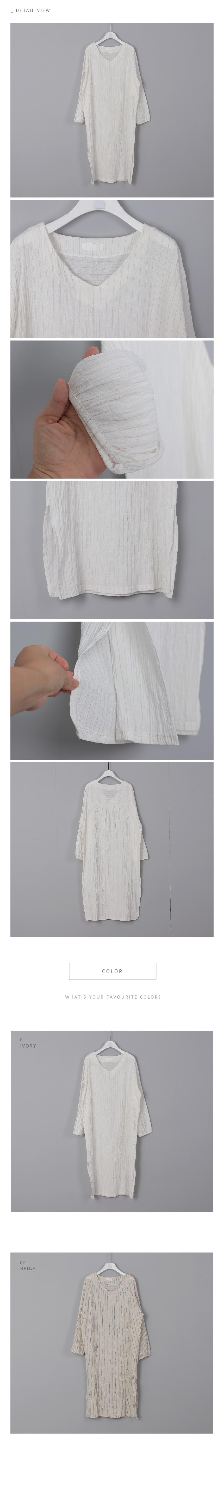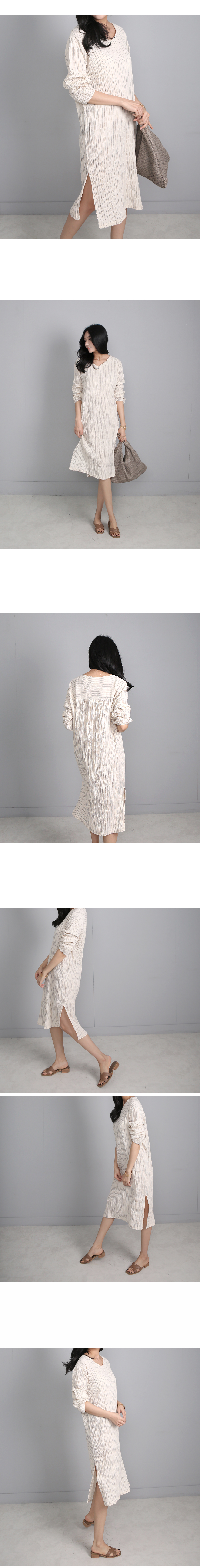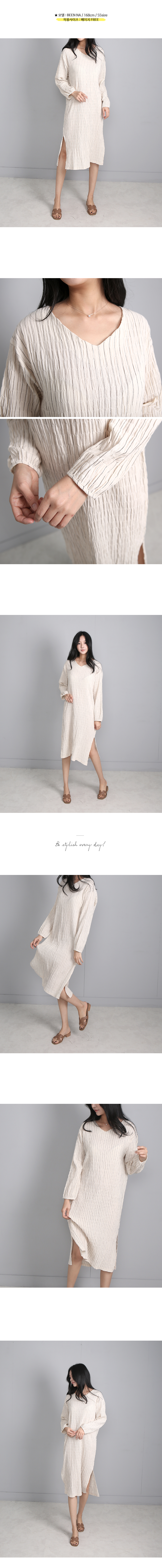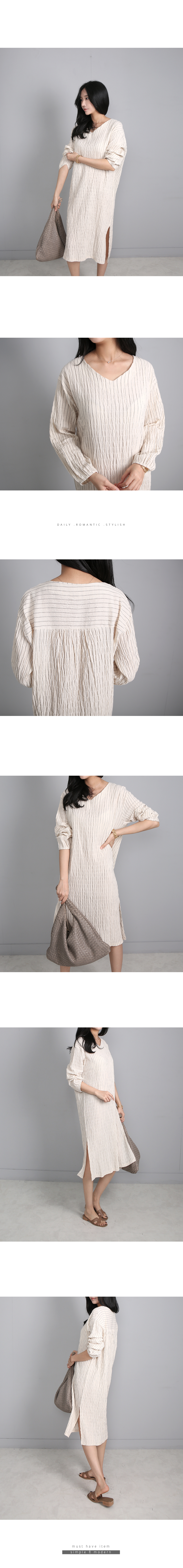 올록볼록 살짝 요철이 느껴지는자연스러운 소재로 거즈가공된코튼 100%의 쾌적한 느낌이 기분좋은 원피스에요심플한 브이넥에 과하게 품이 넓지 않은네추럴핏으로 세로줄의 스트라이프패턴이더해져 슬림하고 길어보여요무릎을 살짝 덮는 길이감으로가볍게 걸치기 좋은 데일리 아이템이랍니다소재는 코튼100%색상은 아이보리, 베이지사이즈는 FREE 44~66반