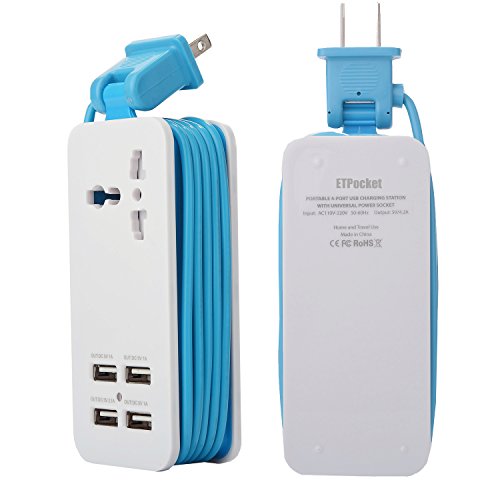 -. Binding : Wireless Phone Accessory -. Brand : E.T.Pocket -. Feature : Universal socket +4 USB port is a perfect power solution for your electronic devices. / Wide range input voltage from 100v to 240v is ideal for international travel. / Wraparound power cord design for easy storage, it is ultra compact to fit into lage and briefcases, convenience for business trips and vacations. / Due to Hotel rooms, airport terminals, and coffee shops never seem to have enough power outlets to handle all your devices at once, such as cell phone iPad power bank, laptops etc. / 1.5 meter/5ft power cord provides a flexible way for extension. -. Label : E.T.Pocket -. Manufacturer : E.T.Pocket -. PackageQuantity : 1 -. ProductGroup : Wireless -. ProductTypeName : WIRELESS_ACCESSORY -. Publisher : E.T.Pocket -. Studio : E.T.Pocket -. Title : Mini USB Power Strip, 4 Port USB charger station 5V 2.1A-1A 21W Travel Charging Strip Outlets 5ft Extension Power Supply Cord With Universal Flat Wall Plug 100V-240V Input USB Power Sockets