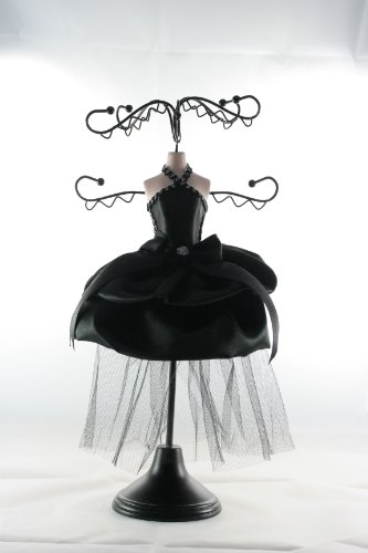 -. Title : 12" Satin Black A Line Halter Cocktail Dress Doll Jewelry Holder Stand Hanger