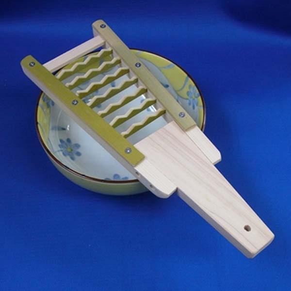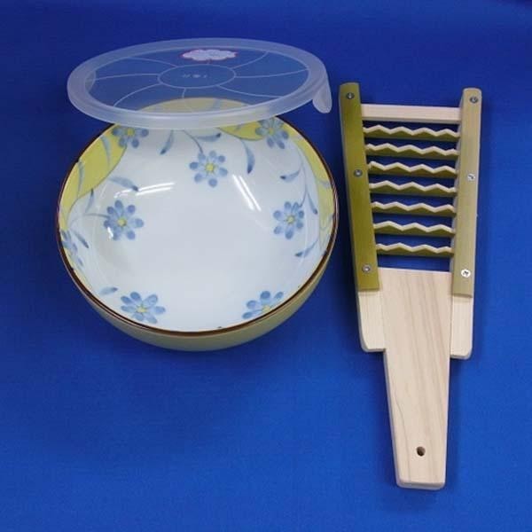 | 竹の刃が鬼の歯を連想させることからその名がついた、大根おろし器です。竹は熱伝導率が低いので、食物をおろすのに熱を持たず、又粗くおろすので、ふんわりシャキシャキにおろすことができます。リンゴやにんにくなどをおろすのにも使えます!!おろした大根おろしなどを保存できる保存容器をセットしました。保存容器は電子レンジでもお使いいただけます。 |