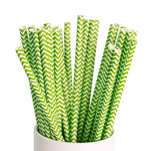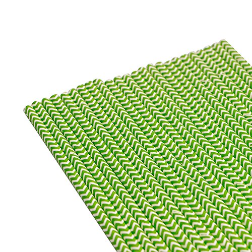 Webake 100 Pack Drinking Paper Straws Striped 7.75 Inch Disposable Replacement Biodegradable (Green)
