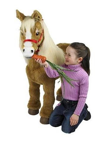 -. Binding : Toy -. Brand : Hasbro -. EAN : 0653569162186 -. Feature : Butterscotch Pony fulfills every little girl's dream of owning a pony / Interacts in incredibly realistic ways: Moves head, blinks, swishes tail, and responds when spoken to and touched / Over three feet tall; can support a rider weighing up to 80 pounds / Loves to be fed and groomed; comes with her own carrot and brush / Recommended for ages 4 through 10 -. IsAdultProduct : 0 -. Label : Hasbro -. LegalDisclaimer : Item is sold as is. To the best of my knowledge the item is in great working order. The seller is not to be held liable for any injury that may occur from playing with this item. -. Manufacturer : Hasbro -. Model : 76471 -. MPN : 076471 -. PackageQuantity : 1 -. PartNumber : 076471 -. ProductGroup : Toy -. ProductTypeName : TOYS_AND_GAMES -. Publisher : Hasbro -. Studio : Hasbro -. Title : FurReal Friends Butterscotch Pony -. UPC : 653569162186