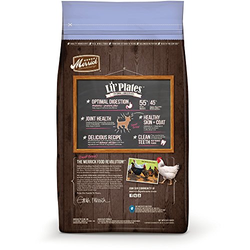 -. Binding : Misc. -. Brand : Merrick -. EAN : 0022808260073 -. Feature : Grain free; no corn, wheat, soy or gluten -.Real deboned chicken is the first ingredient -.Cooked in America with the Earth's Best Ingredients -.No ingredients from China -. Label : Merrick Pet Care -. Manufacturer : Merrick Pet Care -. Model : 26007 -. MPN : 26007 -. NumberOfItems : 1 -. PackageQuantity : 1 -. PartNumber : 26007 -. ProductGroup : Pet Products -. ProductTypeName : PET_SUPPLIES -. Publisher : Merrick Pet Care -. Size : 4 lb -. Studio : Merrick Pet Care -. Title : Merrick Lil'Plates Grain Free Puppy Real Chicken + Sweet Potato Dry Puppy Food, 4 LB -. UPC : 022808260073