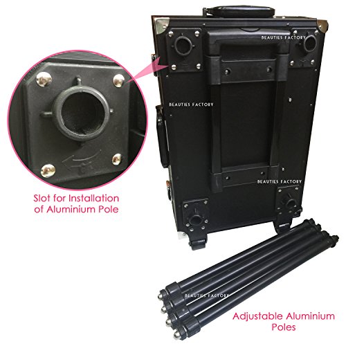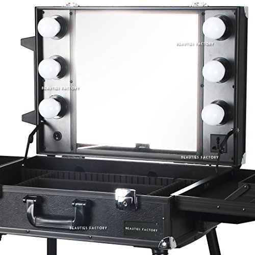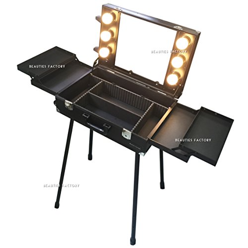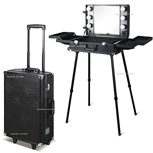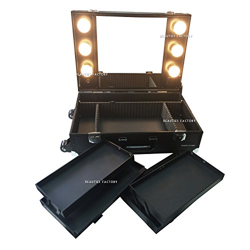 Beauties Factory Black Pro Studio Makeup Artist Cosmetic Rolling Case LED Light Trolley