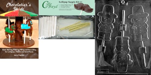 Cybrtrayd "Boy Pilgrim Lolly" Thanksgiving Chocolate Mold with Chocolatier's Bundle, Includes 25 Sticks, 25 Cello Bags, 25 Gold Twist Ties and Chocolatier's Guide
