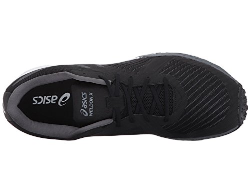 Binding : Apparel Product Description Mens ASICS Weldon X :: Our Weldon X pulls together long-lasting Flex Mesh, cushioning fuzeGEL Technology, lightweight Solyte Midsole material, friction-reducing seamless construction and durable AHAR Plus outsole for 50% more wear in one premium, versatile workout shoe. 0