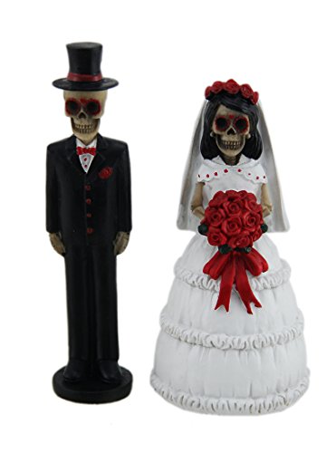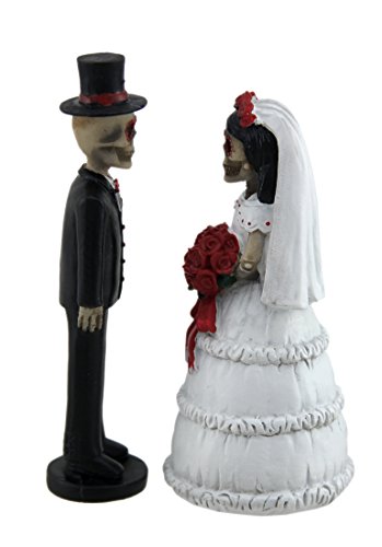 Day of the Dead Skeleton Wedding Couple Decorative Figurine 5" Tall | Bride and Groom Mini Statue Wedding Cake Topper