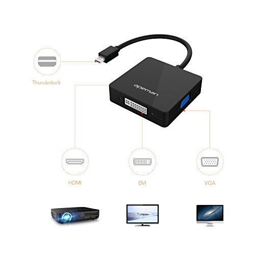 【3 in 1 Mini DisplayPort】With the HDMI, DVI and VGA port, you can connect your MacBook, MacBook Pro, or MacBook Air to a TV, projector, or LCD Display. No driver installation needed