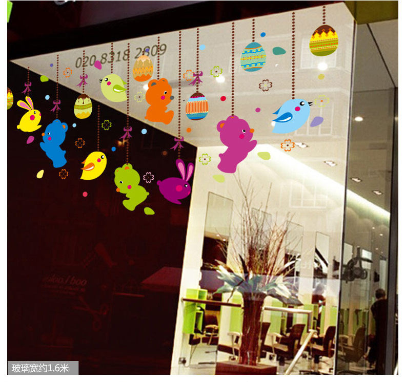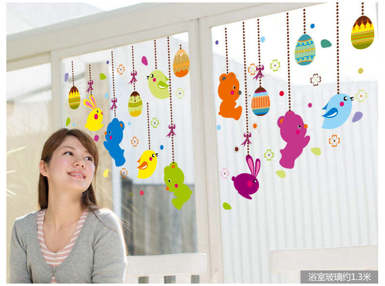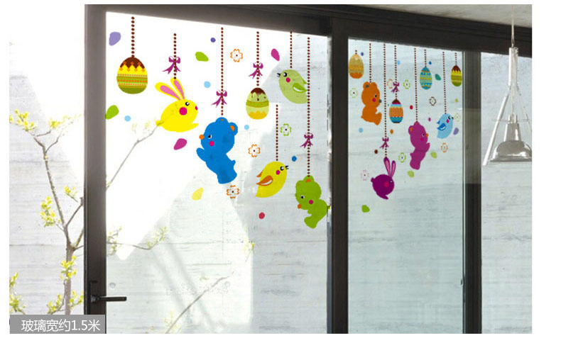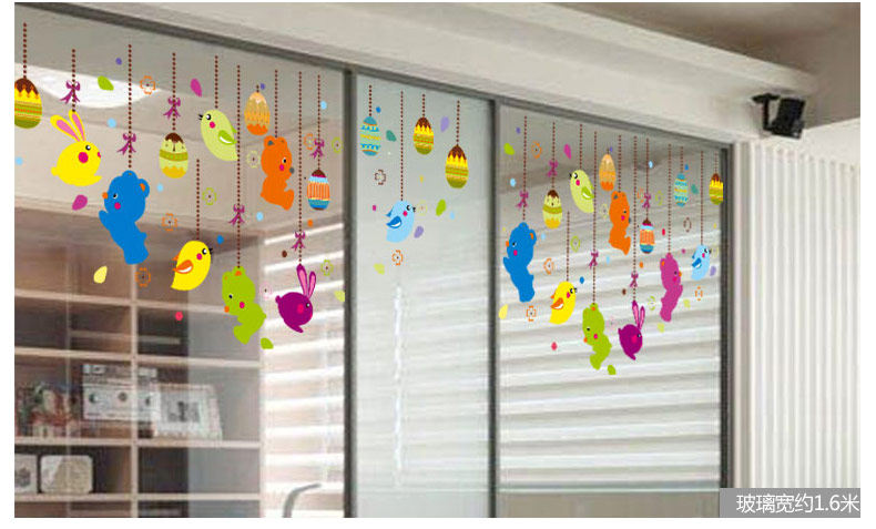 可移除儿童房间卧室玻璃墙贴卡通贴画浴室幼儿园橱窗吊饰贴纸透明