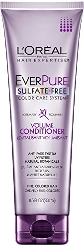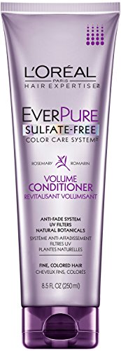 -. Binding : Misc. -. Brand : L'Oreal Paris -. Feature : Sulfate-free, protective volume conditioner for color treated hair infused with refreshing rosemary and juniper / Formulated with natural botanicals / For color treated hair; anti-fade system for long-lasting color purity / Sulfate-free / Net Wt. 8.5 oz. -. Label : L'oreal -. Manufacturer : L'oreal -. Model : Eve-9576 -. PackageQuantity : 1 -. ProductGroup : Beauty -. ProductTypeName : BEAUTY -. Publisher : L'oreal -. Studio : L'oreal -. Title : L'Oreal Paris EverPure Sulfate-Free Color Care System Volume Conditioner, 8.5 Fluid Ounce