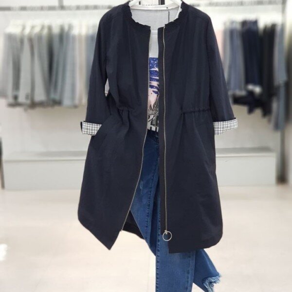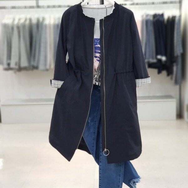 한 여름까지도 가능한 캐쥬얼 홑겹 점퍼입니다.편안한 라운드 넥에 살짝 프릴이 더해져 여성스러우며 칠부소매 체크배색이 단아하지만 세련된 멋을 물씬 풍기는 상품입니다.캐쥬얼하게 티, 청바지, 원피스 등 두루두루 매치 가능하며 봄~여름~가을 3계절 내리 입기 좋은 활용도 높은 상품입니다.현재 66사이즈는 주문량이 많아 순차적으로 나가고 있습니다. 일시적으로 66사이즈 재고 닫음을 양해바랍니다. 감사합니다.(재고변경 연동이 늦어, 취소문자 갈 수 있음을 양해바랍니다.)