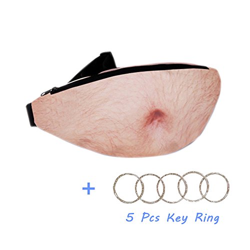 Feature The funny waist packs was made by PU and canvas. 3D print fake belly make the bags more funny.You can attractive more eyes on you. designed to look like a hairy man' s belly; Fashion statement or otherwise.
