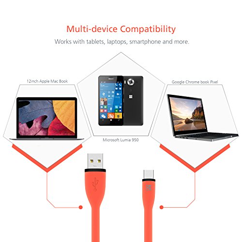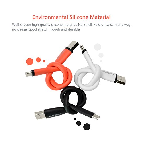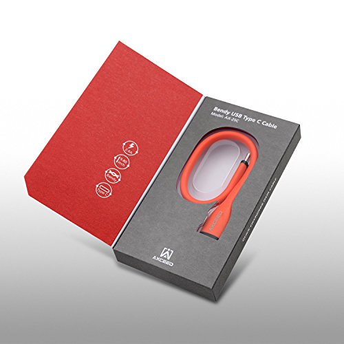 Axceed 9.8inch Bendy USB Type-C Cable Silicone Unibody for Nexus 6p Nexus 5x Lumia 950/950XL Oneplus 2 Nokia N1 Tablet Chromebook Pixel and other Devices with USB C Port (Orange)