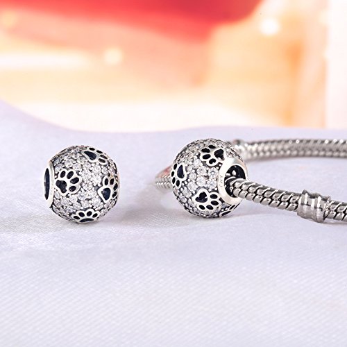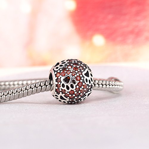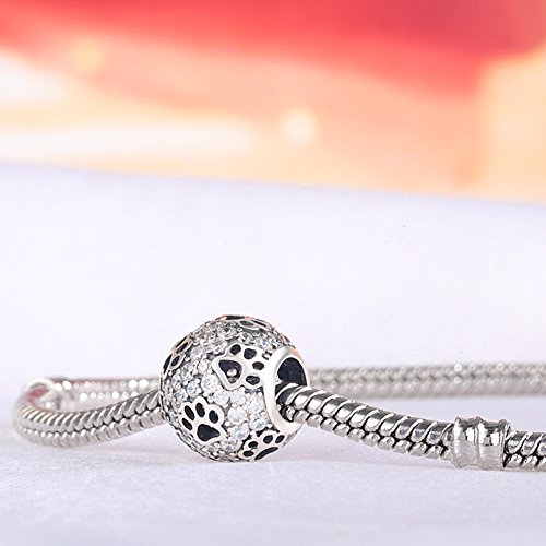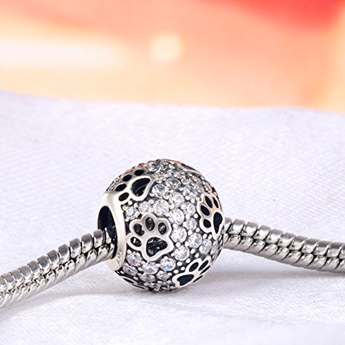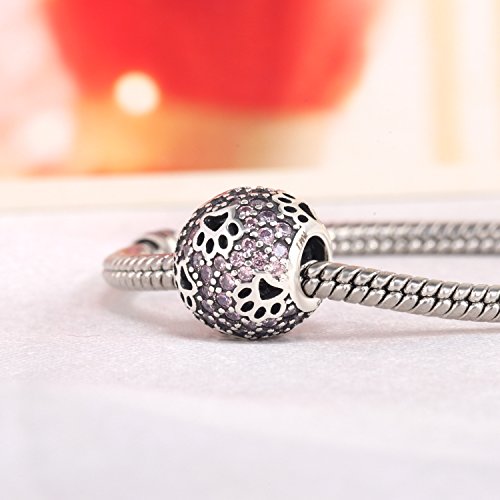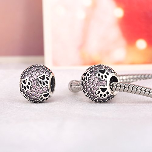 -. Title : Dog Paw Print 925 Sterling Silver Charms Animal Pet For Bracelets Red Clear Pink Yellow Blue CZ Jewelry 5 Style