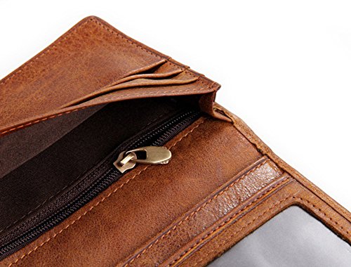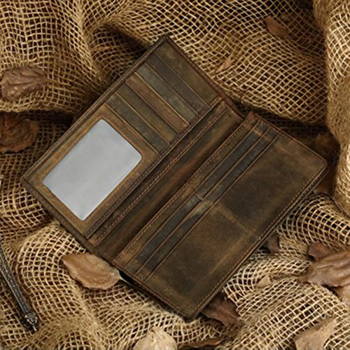 -. Title : TMJJ Men's Vintage Look Genuine Leather Long Bifold Wallet
