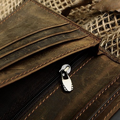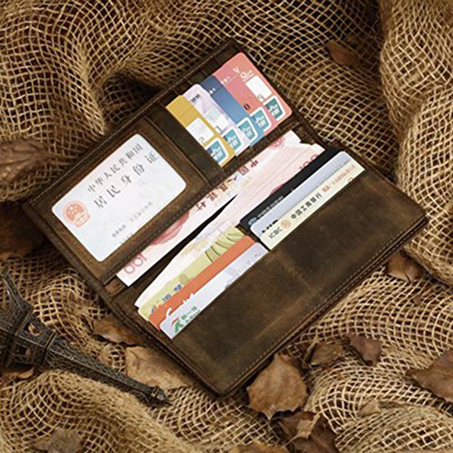 -. Feature : 100% brand new, 100% genuine leather / Material: crazy horse leather. Lining: nylon / Dimensions: 3.54(L) x 7.48(H)inches(9cm length x 19cm height). Weight: 0.12KG / Structure: 11 card slots,2 bill Compartments,1 zipper slot, 2 dark case, 1 ID window / Vintage, elegant and luxury, best gift for men