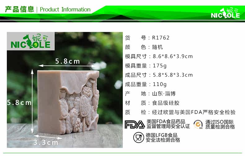 DIY手工皂皂模 莲蓬精油皂肥皂模具方形巧克力模具 硅胶矽胶