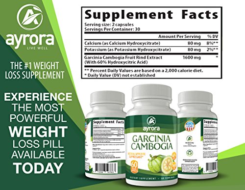 -. Binding : Health and Beauty -. Brand : ayrora -. EAN : 0719006507863 -. Feature : LOSE WEIGHT NATURALLY & COST EFFICIENTLY: Our premium Garcinia Cambogia dietary supplement features Garcinia extract, a fruit that is revered in Asian cuisine for ages both for its flavor and its amazing effects on the body. Simply put, our dietary supplements are the BEST and SAFEST way to burn fat, without spending a fortune on gyms or expensive workout equipment! No side effects, pure weight loss. / 60% HCA FOR MAXIMUM EFFICIENCY: Apart from the natural and organic Garcinia extract, our dietary supplements contain 60% Hydroxycitric Acid. HCA, a natural acid found on the skin of the Garcinia Fruit, has been shown through researches, that it can help naturally decrease your body fat and also lessen the appetite. Furthermore, our Garcinia supplements, contain Potassium for rapid absorption and Chromium to give an energy boost as well! Simply, a combo you can't beat. / THE FAST LANE TO FAT BURNING: Our Garcinia Cambogia capsules can also help you boost your metabolism for faster burning of body fats. That way your body gets purified from fats and only keeps the essential and healthy nutrients. In other words, we simply help your body work better and faster by providing HCA, a NATURAL fat burner. / THE SUPPLEMENT FOR YOUR LIFESTYLE: Our dietary supplements for quick weight loss were designed with your lifestyle in mind. No matter how busy your schedule is, with just a MAXIMUM of two pills a day you'll be burning fat like never before, EFFORTLESSLY. No need for endless hours of sweating and constant gym subscription fees! / 100% SAFE & VEGAN FRIENDLY: Our top dietary supplements are made with just one P.R.Iority in mind, your safety. Our capsules contain absolutely no binders, fillers or artificial ingredients. Our product is pharmaceutical grade, made in a GMP and FDA Registered Lab with the highest standards. Our capsules are non-gelatin vegetarian capsules and promote clinically proven, healthy weight loss! Do not let this high quality and risk-free weight loss deal slip away! -. IsAdultProduct : 0 -. Label : ayrora -. LegalDisclaimer : While we work to ensure that product information is correct, on occasion manufacturers may alter their ingredient lists. Actual product packaging and materials may contain more and/or different information than that shown on our Web site. We recommend that you do not solely rely on the information presented and that you always read labels, warnings, and directions before using or consuming a product. For additional information about a product, please contact the manufacturer. Content on this site is for reference purposes and is not intended to substitute for advice given by a physician, pharmacist, or other licensed health-care professional. You should not use this information as self-diagnosis or for treating a health problem or disease. Contact your health-care provider immediately if you suspect that you have a medical problem. Information and statements regarding dietary supplements have not been evaluated by the Food and Drug Administration and are not intended to diagnose, treat, cure, or prevent any disease or health condition. Amazon.com assumes no liability for inaccuracies or misstatements about products. -. Manufacturer : ayrora -. MPN : ayr03 -. PackageQuantity : 1 -. PartNumber : ayr03 -. ProductGroup : Health and Beauty -. ProductTypeName : HEALTH_PERSONAL_CARE -. Publisher : ayrora -. Studio : ayrora -. Title : Garcinia Cambogia Extract 60% HCA| The Best Natural Weight Loss & Appetite Suppressing Dietary Supplement| 60 Easy To Swallow Caps/Bottle NO Fillers/ Binders/ Artificial Ingredients Vegan Friendly -. UPC : 719006507863