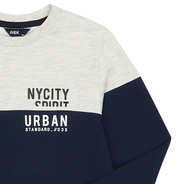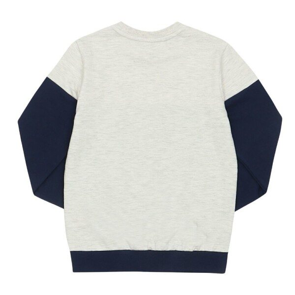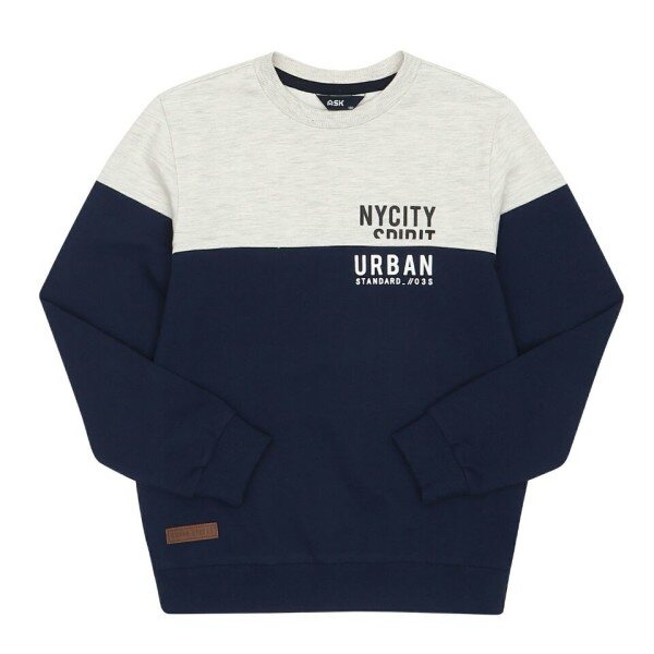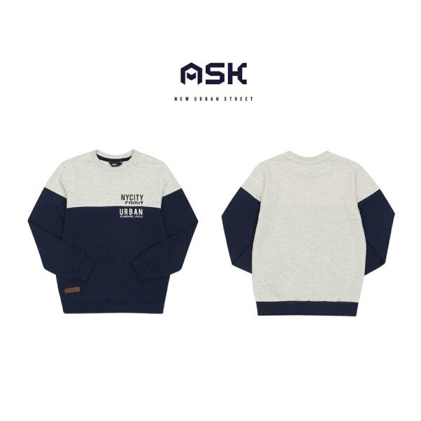 미니 쮸리 소재의 맨투맨.위, 아래 절개 배색과 레터링을 포인트로 준 깔끔한 스타일.
