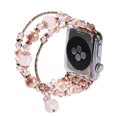 | [해외]여성 시계 밴드 애플 시계 38 미리메터 42 미리메터 패션 천연 돌 로즈 비즈 팔찌 iWatch 스트랩 Series1 2 소녀 손목 밴드 |