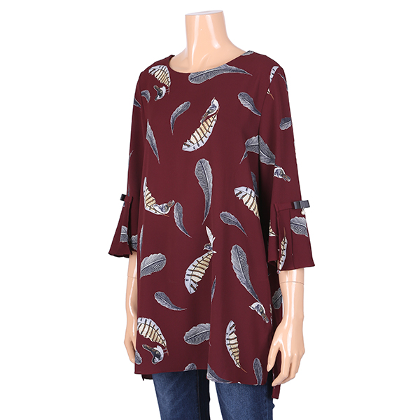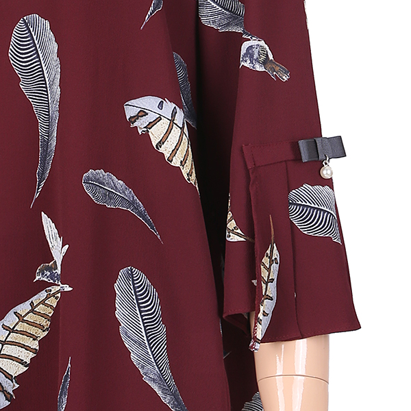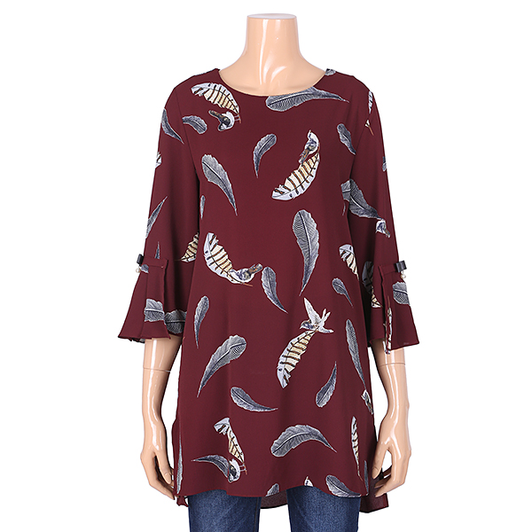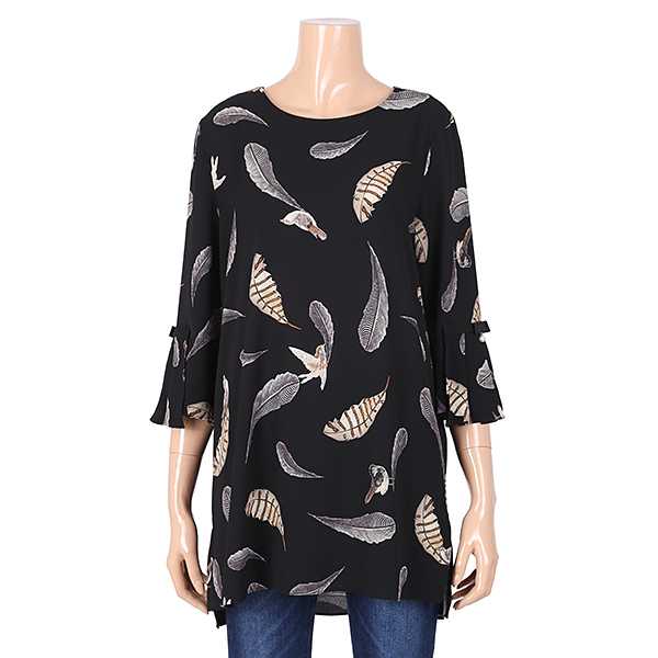 나뭇잎 프린트 문양이 계절을 느길수 있고 살작 에이라인 스타일의 옆트임이 세련된 상품입니다
