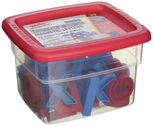 Studio : School Specialty Publisher : School Specialty Binding : Office Product Product Description Our magnetic letters and numbers are the best on the market with larger, stronger magnets for a "sure stick." Letters are shaped accurately with correct proportions, and assortments come with more of the letters you need most (extra vowels a, e, i, o, u, and consonants b, l, m, r, s and t). Jumbo pieces are 2 1/2" tall for handling ease and tactile feedback for young children learning basic skills. Each set comes in a durable, stackable tub with brightly colored plastic lid for convenient self storage. Various sizes shown. Accurately Formed Shapes And Proportions. Color-coding helps children learn the difference between consonants (blue) and vowels (red). More and stronger magnets stay where they're placed. All pieces measure 2-1/2" tall. Includes durable plastic storage tub. 0