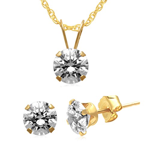 -. Binding : Jewelry -. Brand : Jewelili -. Department : womens -. Feature : 10kt Yellow gold set of solitaire pendant necklace and stud earrings set embellished with Swarovski Zirconia. The pendant includes an 18" rope chain. The earrings are secured with butterfly ear nut and post. / All of our gemstones are conflict free / A perfect gift to celebrate life and love! / Item is shipped in a beautiful JEWELILI gift box / Return on any order within 30 days -. Label : Jewelili -. Manufacturer : Jewelili -. Model : BS 63351 -. MPN : BS 63351 -. PartNumber : BS 63351 -. ProductGroup : Jewelry -. ProductTypeName : FASHIONOTHER -. Publisher : Jewelili -. Studio : Jewelili -. Title : Jewelili 10KT Yellow Gold Swarovski Zirconia Solitaire Pendant Necklace And Stud Earrings Box Set