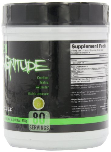 ReleaseDate : 2007-11-27 Studio : Controlled Labs Publisher : Controlled Labs Binding : Health and Beauty Product Description We have responded to customer demand and the result: Green MAGnitude...Creatine with ATTITUDE !! If you want to increase your stamina in the gym and gain size and strength, Green MAGnitude is the right choice for you. If you want similar results in convenient capsule form, we recommend Green Bulge. Either way, you are getting a full dose of patented Magnesium Creatine Chelate that has been clinically proven to increase strength. 0