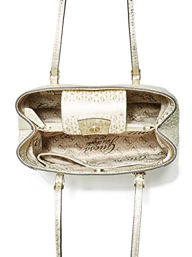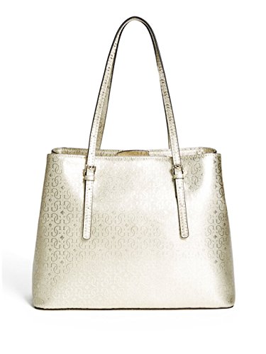 Product Description Faux-leather logo-embossed tote features coated finish, gold-tone hardware and removable Quattro G logo charm. Plus fold-over strap, divided interior and exterior slip pocket. 0