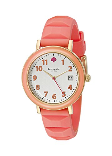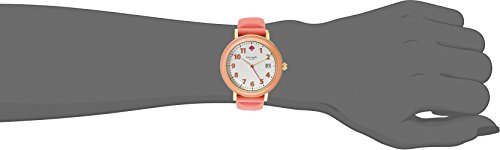 -. Feature : Round watch featuring pink bezel and white dial with date window and easy-to-read numerals / 34 mm metal case with mineral dial window / Japanese quartz movement with analog display / Silicone band with buckle closure / Water resistant to 30 m (99 ft)