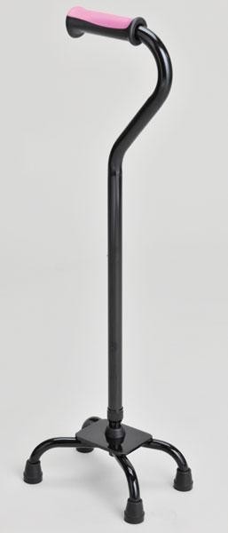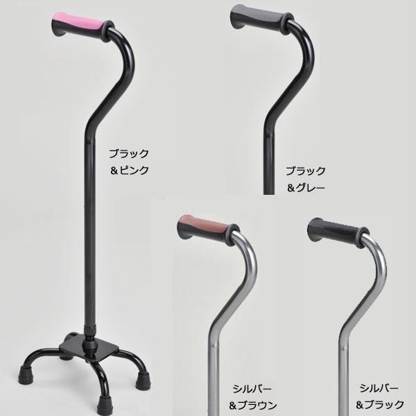 グリップ形状が手にかかる負担を軽減。グリップの動きを防止するパイプロック仕様の4点支持杖です。