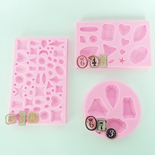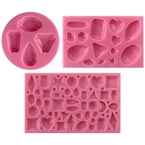 Funshowcase Diamonds Gems 3-pieces Set Assorted Shapes Silicone Mold, for Cake Cupcake Decorating, Crafting, Polymer Clay, Resin