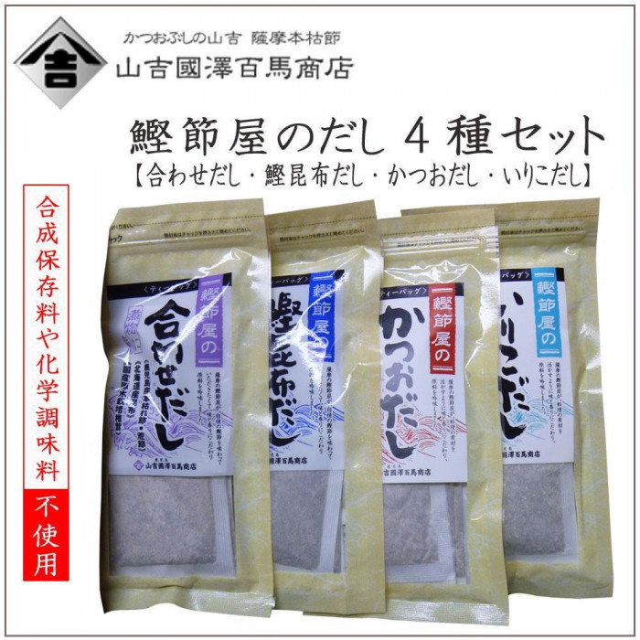 | 原材料 | 名称:【合わせだし・鰹昆布だし】和風だし、【かつおだし】かつおだしパック、【いりこだし】いりこだしパック 【合わせだし】鰹節、昆布、鯖節、鰯節、椎茸 【鰹昆布だし】鰹節、昆布、鯖節、鰯節 【かつおだし】鰹節(鹿児島) 【いりこだし】煮干いわし類(瀬戸内産) |