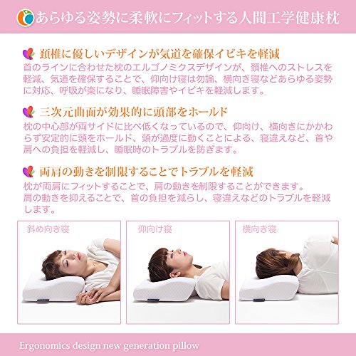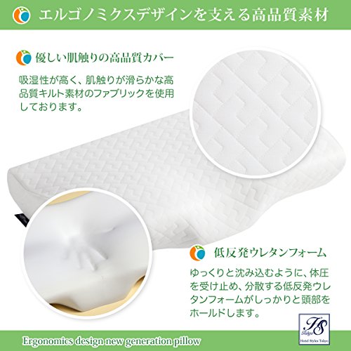 Popular, low-repulsion health pillow that has been ergonomically designed (ergonomics) is, head, neck, shoulder and gently support, high-quality by optimizing the flexibility to cope with various posture during sleep can sleep to become, prevention of a number of problems during sleep, reducing can be expected. Also by the sophisticated ergonomic design and low-foam material, to recover the fatigue of the day with outstanding comfort. If you need help in trouble at the time of sleep, please try. Snoring, stiff neck, Nechigae, sleep disorders, straight neck, chronic fatigue, Attention urethane foam on the sleep apnea syndrome use can not wash. Please wash only the cover and remove the urethane foam. Urethane foam is a direct sunlight strictly prohibited. There is a possibility to reduce the cured product life. Three-dimensional curve of the concave pillow central portion corresponding to all Nesugata, frequent rolling over also for fit in the center of the pillow without deviating the positions of the head, corresponding to the smoother to irregular movements of the head due to the turn To do. Therefore, a trouble such as Nechigae by unnatural neck movement of the line during sleep to prevent in advance, comfortable sleep of trouble-free will persist. In the case of supine sleeping, pillow own neck curve line is, keep the cervical spine and head to the optimum position, it is to ensure the airway breathing will be smooth. In the case of sideways sleeping, head cervical line of line of around the neck is kept at a constant height from, positioning over the shoulder from the neck that is optimized, reducing the burden of over the shoulder from the neck during sleep It is, to improve the symptoms of snoring and stiff neck. Because you are using a foam material, to distribute the pressure to sink slowly, because they are adjusted to optimize the pressure balance of over the shoulder from the head, it does not have to compress the blood vessels and nerves of the neck line. Therefore, blood flow in the cervical spine becomes smooth, loose tension of the muscles over the shoulder from the neck, since it is possible to relax, you can expect to reduce neck and shoulder stiffness and pain, headache and effectively. A number of extremely products Hotel Styles Tokyo to deliver. Please enjoy the high-quality space of hotel quality at home.