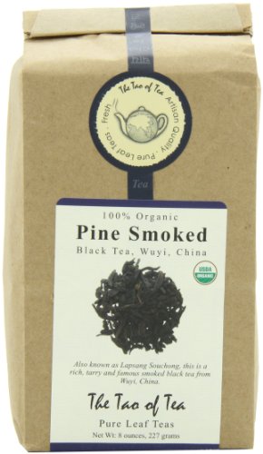 -. Binding : Grocery -. Brand : The Tao of Tea -. EAN : 0689951805010 -. Feature : With tea leaves that are hung from bamboo baskets above smoking pine-wood ash / Originates from Mount Wuyi (on the northern border of Fujian province with Jiangxi province, China) / Very smoky, smooth and uplifting taste -. Label : The Tao of Tea -. Manufacturer : The Tao of Tea -. NumberOfItems : 3 -. PackageQuantity : 3 -. ProductGroup : Grocery -. ProductTypeName : GROCERY -. PublicationDate : 2011-02-03 -. Publisher : The Tao of Tea -. Size : 8 Ounces -. Studio : The Tao of Tea -. Title : The Tao of Tea Pine Smoked Black, 8-Ounce Bags (Pack of 3) -. UPC : 689951805010