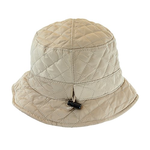 Binding : Apparel Product Description This cute quilted Women`s bucket design rain hat is sure to be your new go to winter hat. Hat features a quilted water repellant exterior and a 2 inch wrap around brim which makes it great for use in rain or snow. Hat design features a classic bucket cloche shape. This self-lined hat is created from water repellant 100% polyester fabric. One size fits most. Interior circumference measures: Aprox 22 inches / 57 cm and can be adjusted down with the exterior drawstring. Hat can be folded making it easy to carry in a purse or suitcase. Available for a limited time only. If you have any concerns regarding this hat once you receive it, we invite you to contact us right away, so we can find a way to make you happy. 0