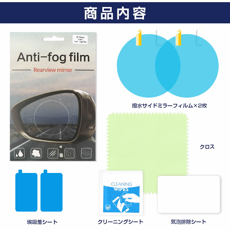 光透過率が高く、ミラーの曇り、水滴付着、汚れ防止し、雨天や霧が濃い環境でも効果を発揮できます。