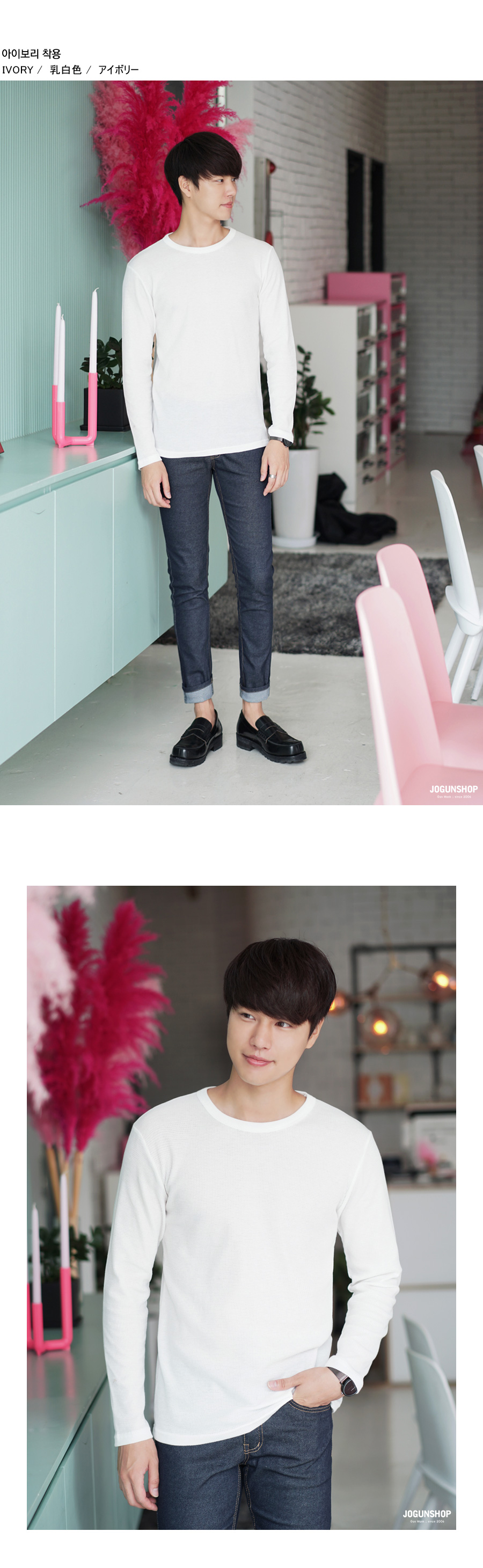 완벽한 신축성과 부드러운 착용감에 넉넉하게 착용이 가능한 편안함까지 골고루 갖춘 와플 긴팔티이다.