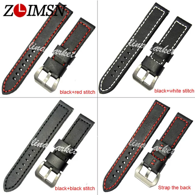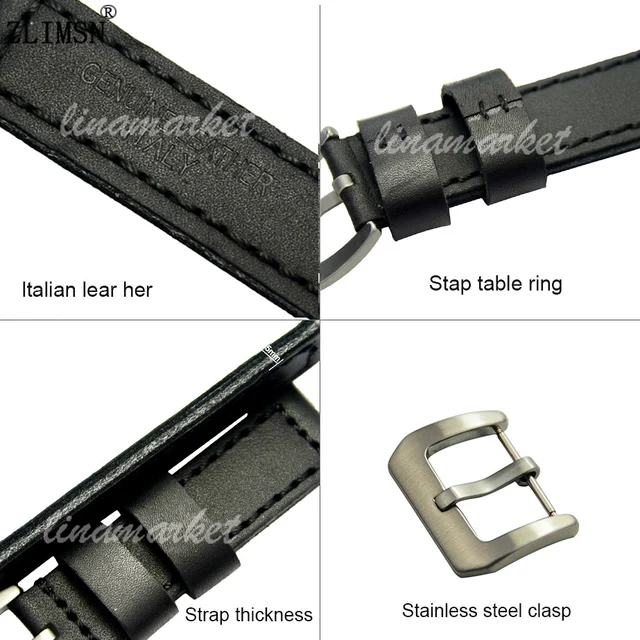 ZLIMSN 20 22 24 미리메터 정품 가죽 시계 줄 스틸 닦았 완료 핀 버클 블랙 이상 밴드 스트랩 스테인레스 스틸 버클