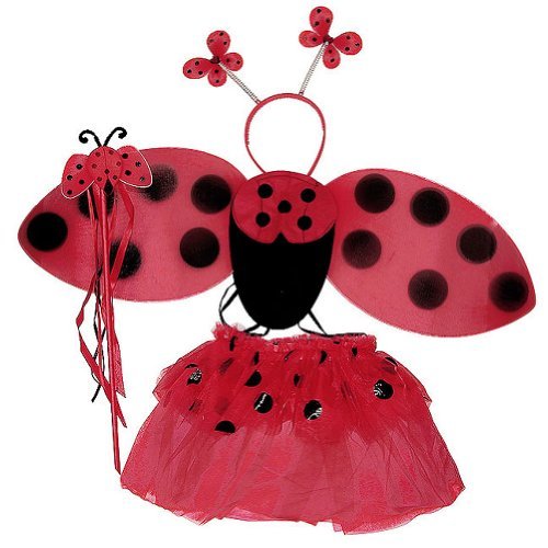 -. Title : Girls Ladybug 4 Piece Tutu Set (Red & Black, One Size)