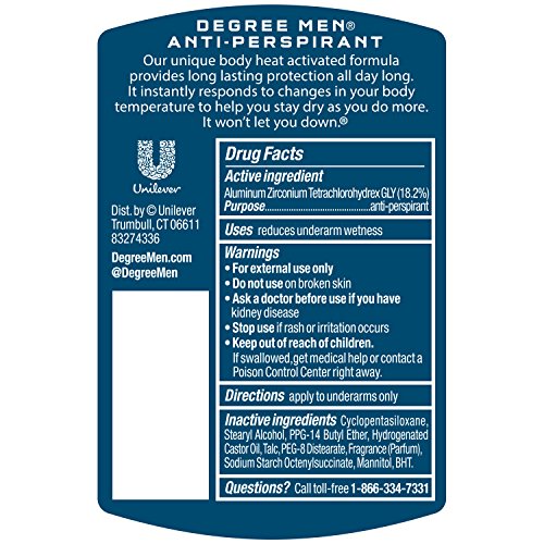 -. Binding : Grocery -. Brand : Wahl -. EAN : 0079400265708 -. Feature : Degree Men Dry Protection Antiperspirant & Deodorant - Sport 2.7 oz provides 24-hour body odor and wetness protection that won't let you down / Invisible solid - goes on clear / Body Heat Activated / Stay dry all day / Works well for outdoor sports and work outs -. Label : Unilever -. Manufacturer : Unilever -. Model : 10079400265705 -. NumberOfItems : 1 -. PackageQuantity : 1 -. ProductGroup : Pantry -. ProductTypeName : GROCERY -. Publisher : Unilever -. Studio : Unilever -. Title : Degree Men Dry Protection Antiperspirant Sport 2.7 oz -. UPC : 079400265708