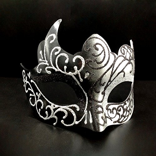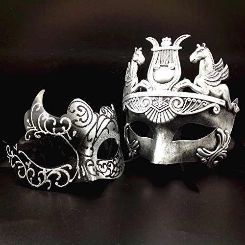 Silver / Black Glitter Women Mask & Silver Roman Warrior Men Mask Venetian Couple Masks For Masquerade / Party / Ball Prom / Mardi Gras / Wedding / Wall Decoration