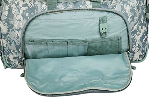 -. Binding : Misc. -. Brand : ARMYCAMOUSA -. Feature : 24" x 10" x 13", 3 lbs; 186-cu. in. capacity; 68.6-liter capacity; Large Locker Bag 600 Denier Polyester Features multi-zippered compartments Separate zippered waterproof compartment to store dirty clothes or booots away from other items / Heavy-duty self-healing zippers;Large zip pockets on sides, front;Reinforced handle;MOLLE attachments on side pocket;Adjustable 2" padded shoulder strap / Multi-zippered compartments;Separate zippered waterproof compartment to store dirty clothes or boots away from other items, store dirty clothes or boots away from other items. / This medium size bag is roughly 10 inches wide and in depth. Large areas on the sides and top flap are ideal for embroidering or P.R.Inting with your favorite insignia or logo. The front accessory pocket provides a wide but shallow space for smaller devices and items. The side compartment offer more room for smaller items that need separation for the main compartment. The main compartment is large and offers mildew resistant wipe-down material for longevity and strength over a lifetime of use. / If you are looking for a quality gym bag or carry-on for flights, this bag will give you years of service. -. IsAutographed : 0 -. IsMemorabilia : 0 -. Label : ARMYCAMOUSA -. Manufacturer : ARMYCAMOUSA -. MPN : 08032B -. PartNumber : 08032B -. ProductGroup : Sports -. ProductTypeName : SPORTING_GOODS -. Publisher : ARMYCAMOUSA -. Studio : ARMYCAMOUSA -. Title : Military Tactical Large Duffle Locker Bag 08032B