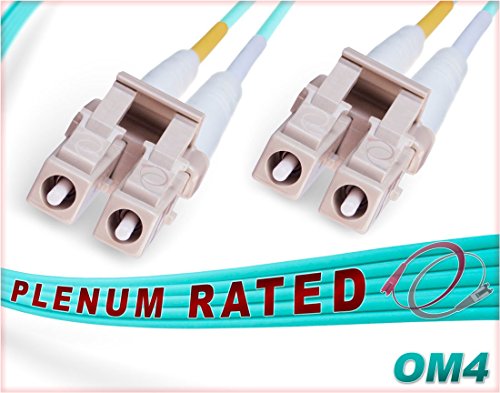 Studio : FiberCablesDirect Publisher : FiberCablesDirect Binding : Electronics Product Description OM4 LC LC 10Gb 40Gb 100Gb Plenum 50/125 Multimode Duplex Fiber Optic Cable. OFNP (Optical Fiber Non-conductive Plenum) fire rated assembly with aqua, self-extinguishing fire retardant jacket, Corning optical fiber glass core and small form factor (SFF) 1.25mm ceramic ferrule LC connectors (with duplex clips). This Laser-Optimized Multimode Fiber (LOMMF) jumper is built for performance and designed to last in rough, high density cable environments, most commonly used for schools, healthcare facilities and government building.