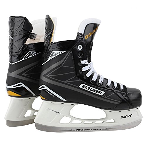 Studio : Bauer Publisher : Bauer Binding : Toy Product Description Bauer Supreme S150 Ice Hockey Skates - Senior Upper Features Quarter Package: 3-D Trueform tech PU Lining Material: Hydrophobic microfiber Ankle Padding: Lightweight memory foam ankle pads Tongue Construction: Anatomical 30oz 2-piece felt with metatarsal guard Footbed: FORM-FIT EVA Thermoformable: Thermoadjustable upper Lower Features Outsole: TPR Blade Holder: TUUK LIGHTSPEED Pro Runner: TUUK Super stainless steel 0