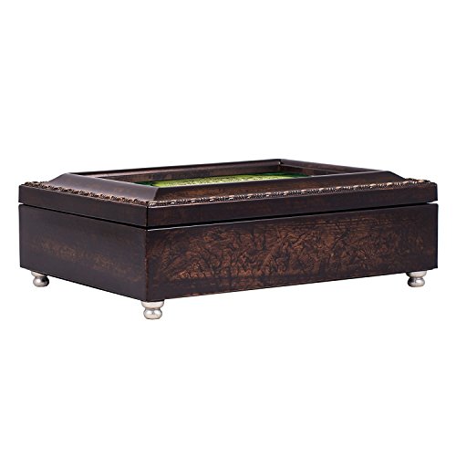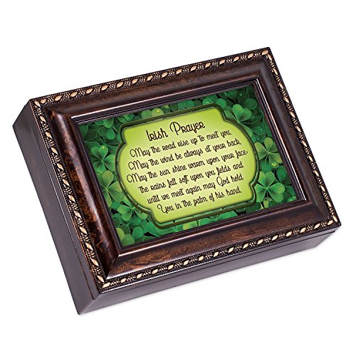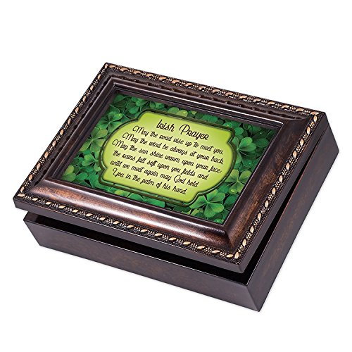 Irish Blessing Green Shamrocks Burlwood Finish Jewelry Music Box Plays Canon in D