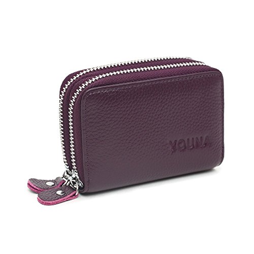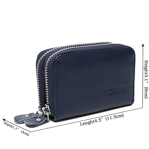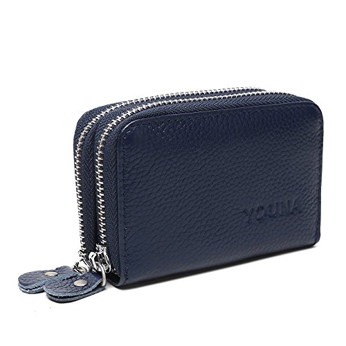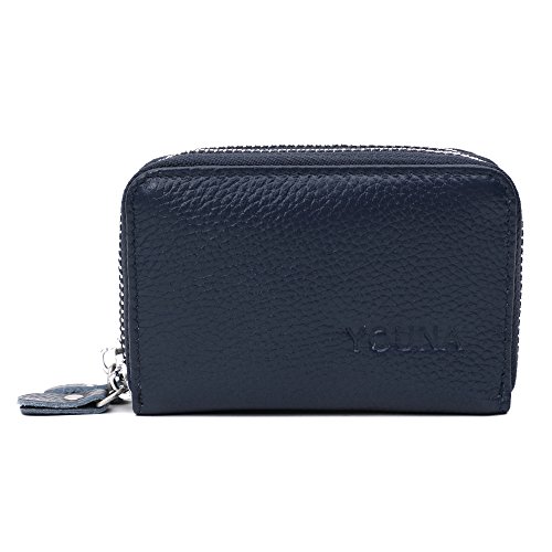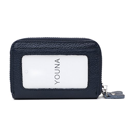 Credit Card Wallet,YOUNA Rfid Blocking Genuine Leather Credit Card Holder for Women Dark Blue